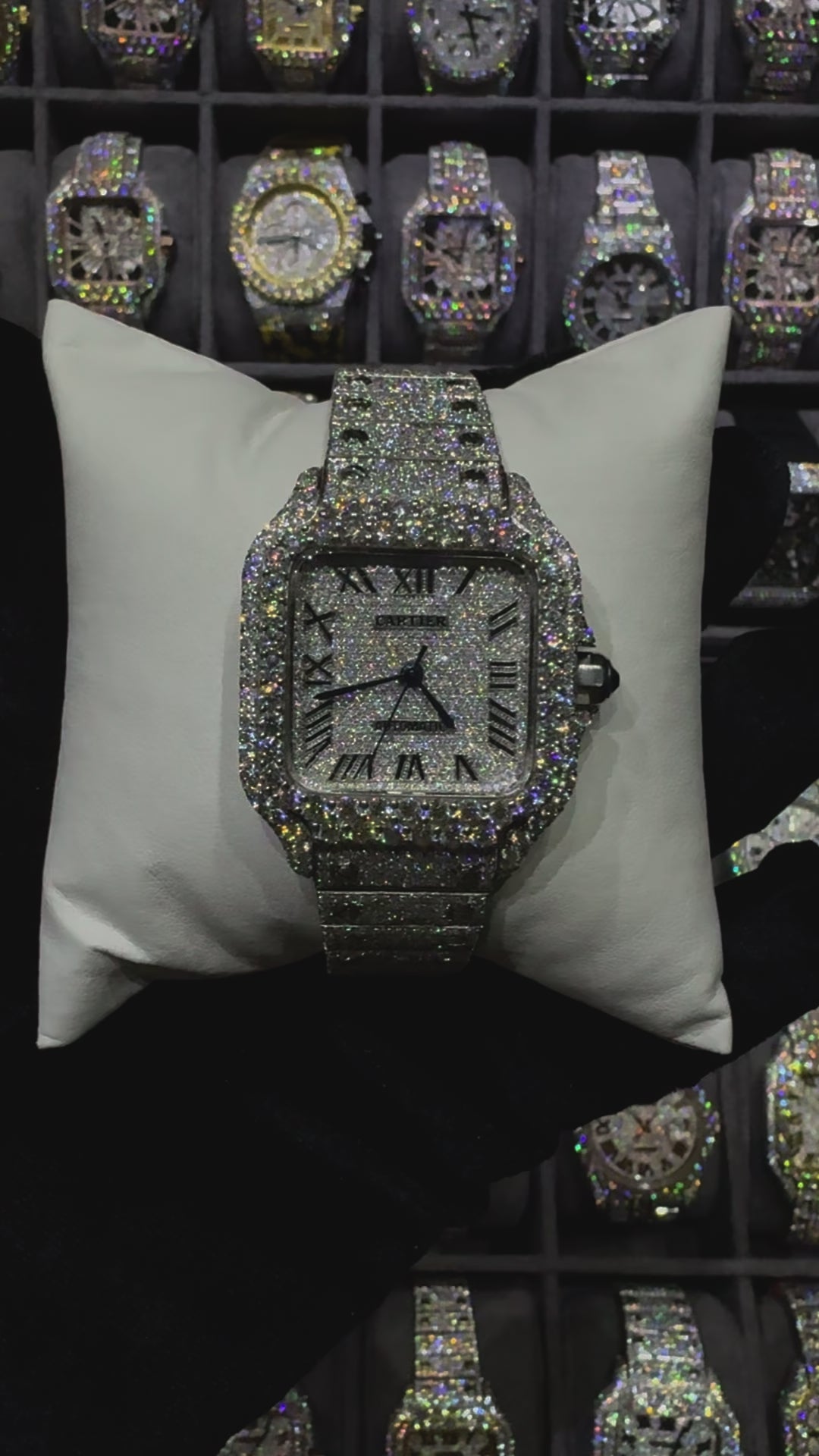 All White Santos 36mm Diamond Moissanite Automatic Watch