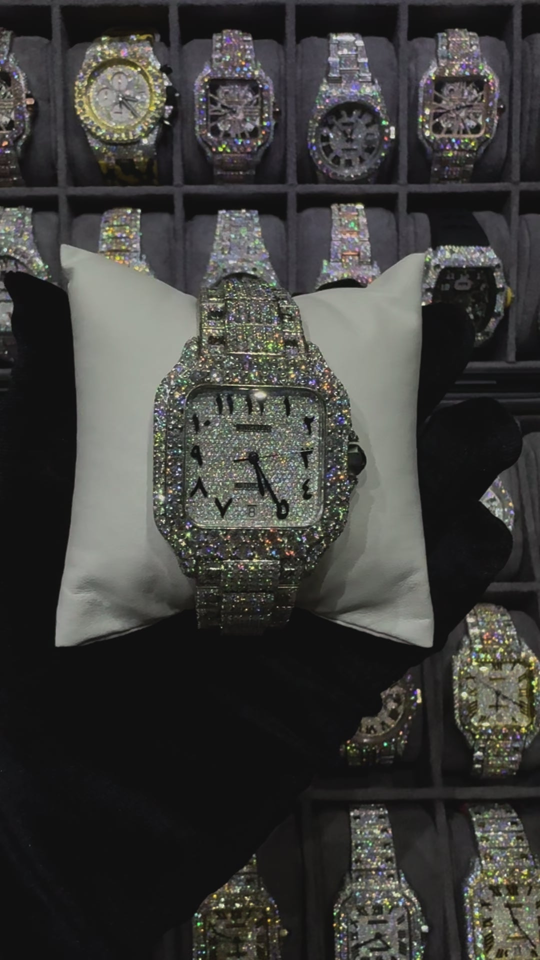 White Square Arabic Dial Modified Bend Moissanite Diamond Automatic Watch