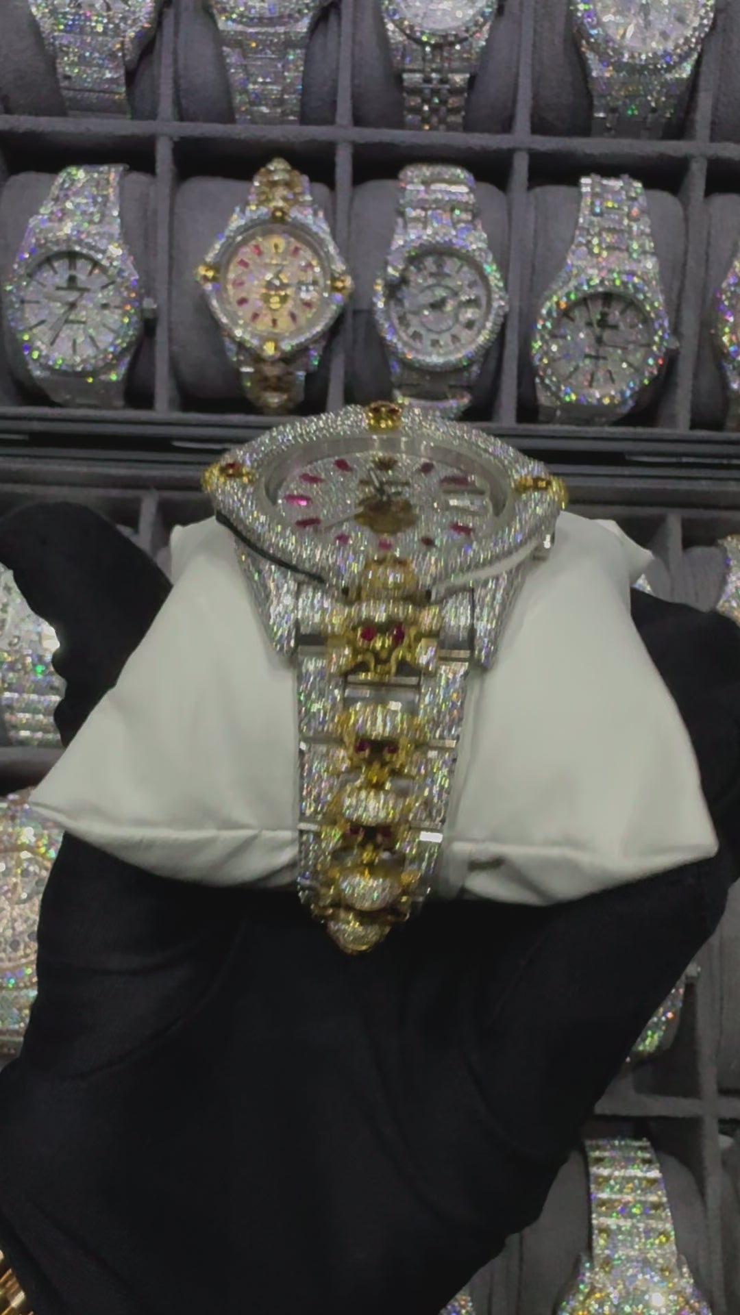 Yellow White Round Dial Unique Moissanite Diamond Automatic Watch