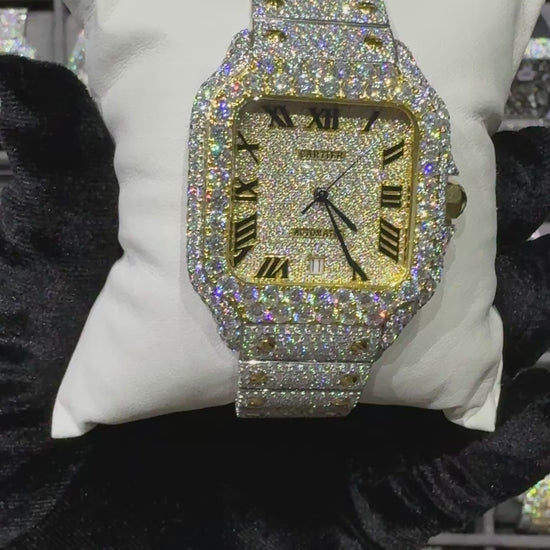 Yellow White Square Dial Santos Moissanite Diamond Automatic Watch